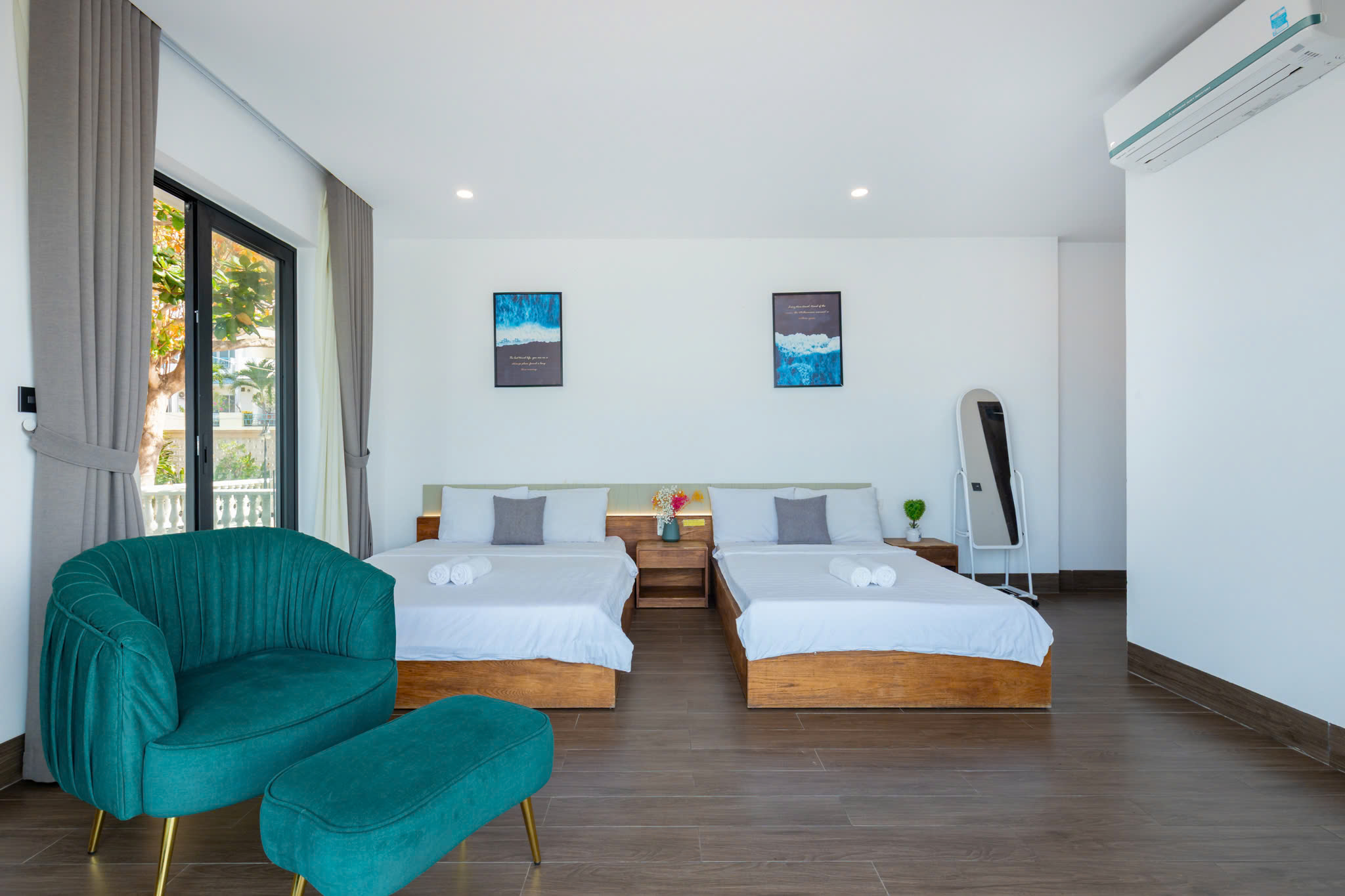 Biệt thự được thiết kế 1 trệt 1 lầu trên diện tích rộng 450m², mang phong cách hiện đại, không gian mở thoáng mát. Villa gồm 5 phòng ngủ, 7 giường lớn, phù hợp cho nhóm từ 10–20 khách, gia đình hoặc nhóm bạn đi du lịch, nghỉ dưỡng.