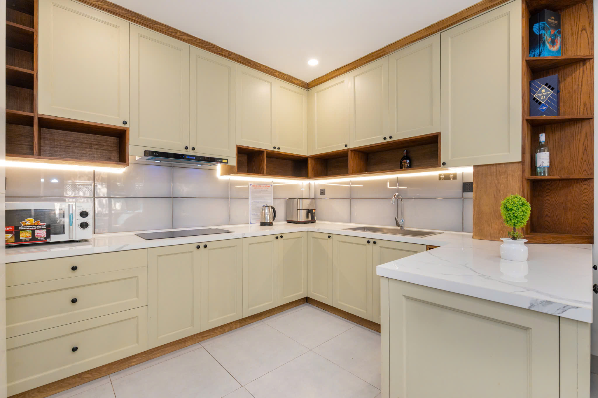 Khu bếp được trang bị đầy đủ tiện nghi, giúp bạn dễ dàng nấu ăn hoặc tổ chức các buổi tiệc tại villa.