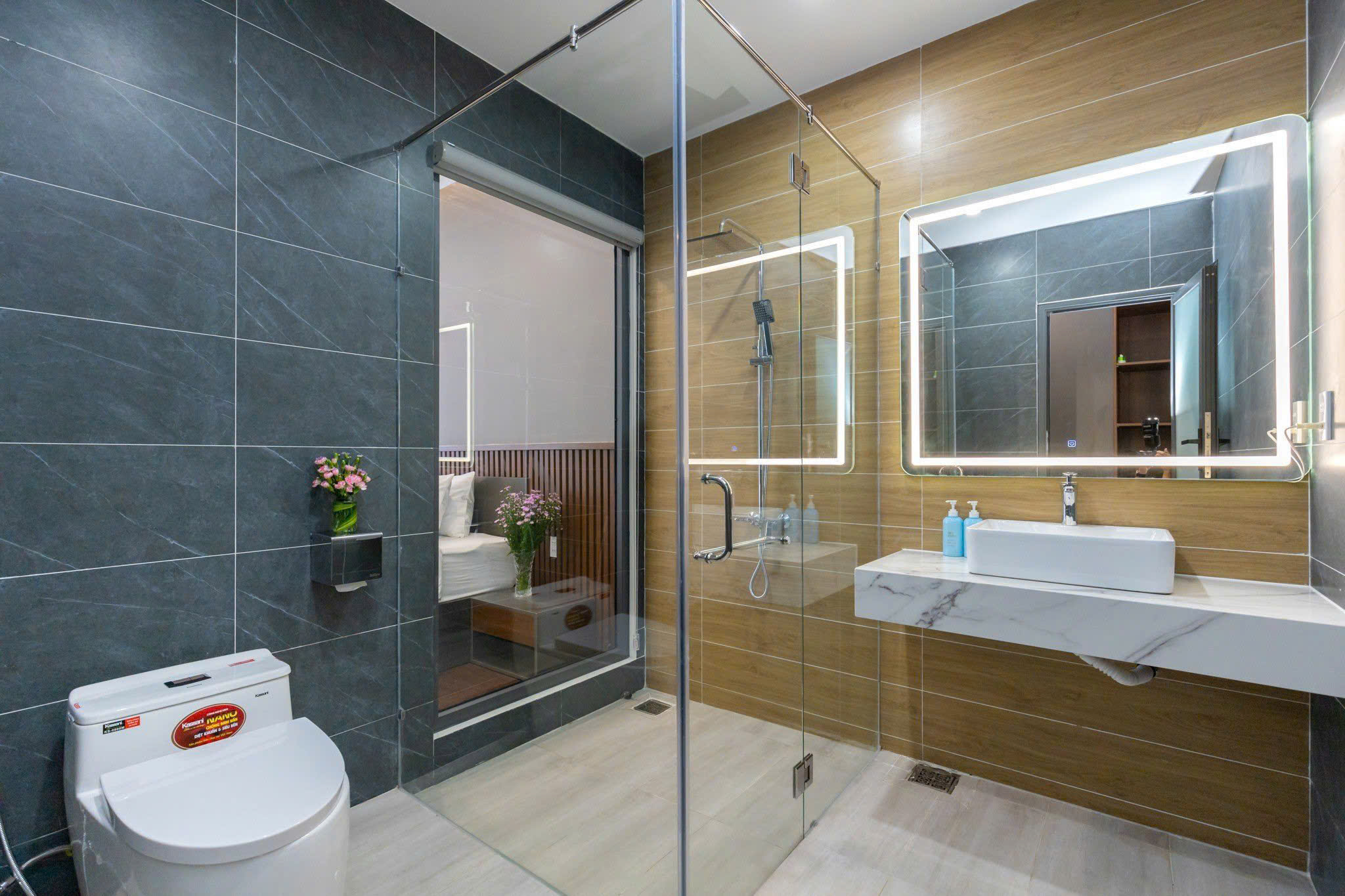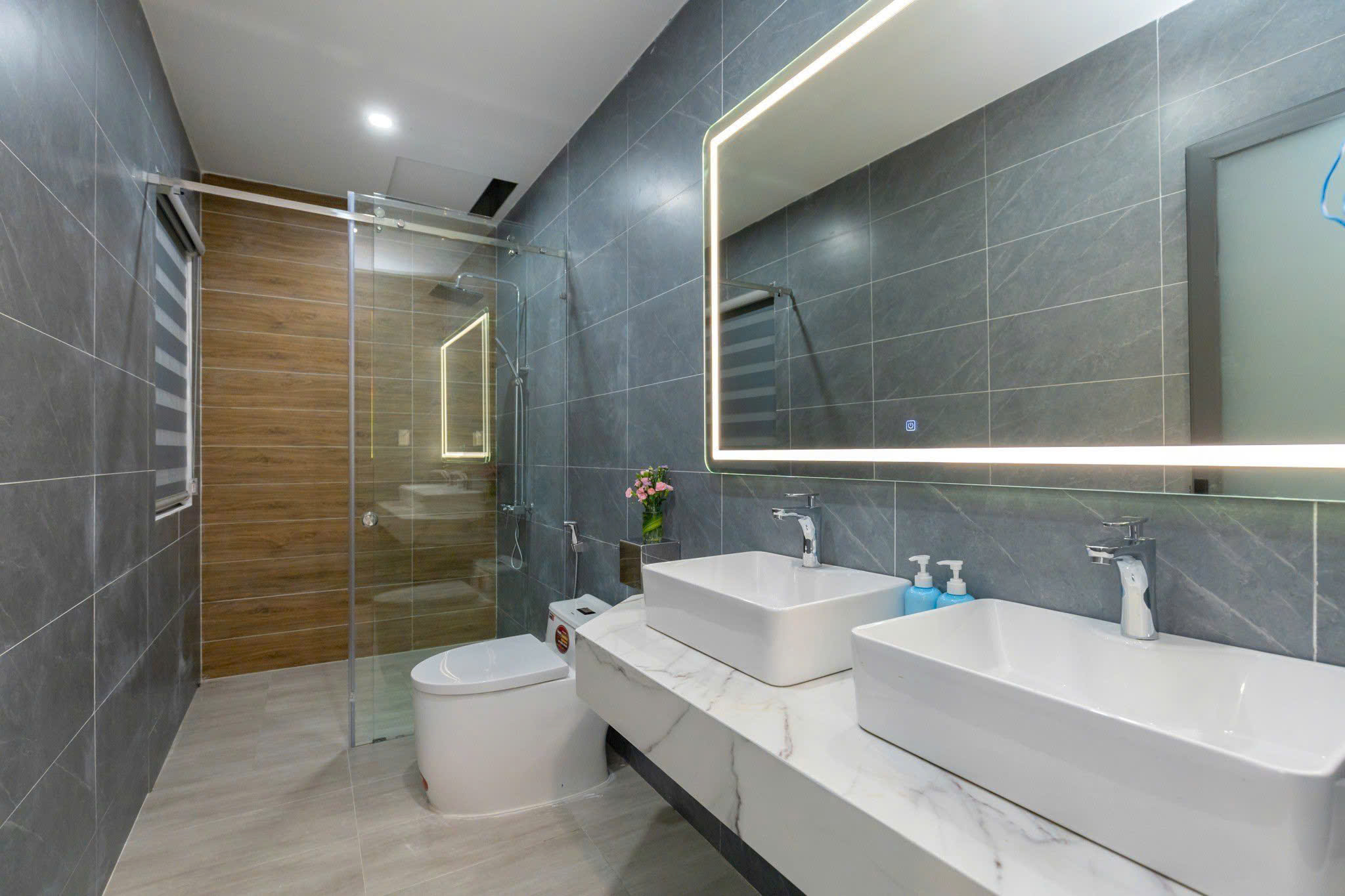 Hệ thống 7 toilet (6 phòng khép kín) đảm bảo riêng tư, tiện nghi. Phòng khách rộng 50m², thiết kế sang trọng, thích hợp sinh hoạt chung hoặc tổ chức tiệc.