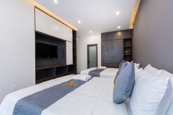 Biệt thự thiết kế 1 trệt 1 lầu trên diện tích 450m², phong cách hiện đại, rộng rãi. Villa gồm 6 phòng ngủ, 8 giường lớn, phù hợp nhóm 12–20 khách, gia đình hoặc nhóm bạn du lịch.